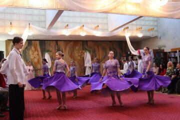 Дамы и барышни в бальных платьях встречали гостей, дарили каждому брошь ручной работы – букетик цветов вместе с строками Тараса, и даже гадали на сборнике стихов Шевченко.